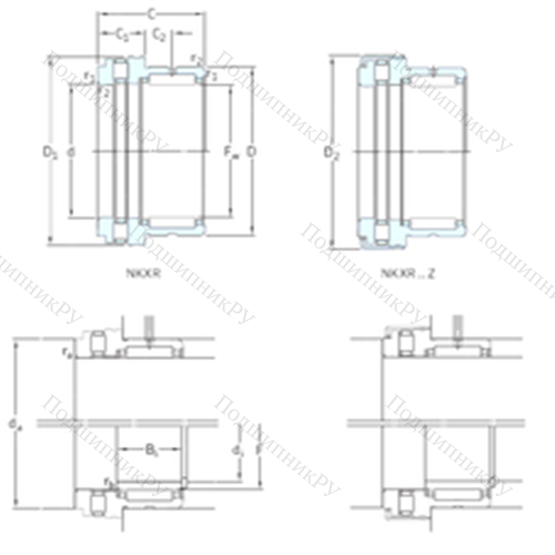 Малогабаритная конструкция Подшипник комбинированный NKXR20 представляет собой совмещение игольчатого радиального роликоподшипника и упорного подшипникового тела качения (роликового или шарикового). В качестве упорной части может идти сепаратор, в то время как иные варианты поставляются без данного элемента. Также существуют фланцевые и бесфланцевые разновидности со стандартным или удлиненным тугим кольцом.