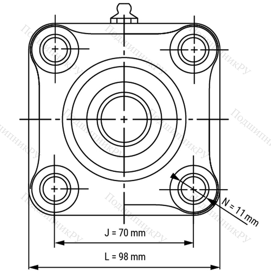 - Фланцевая конструкция подшипника с 4 отверстиями позволяет устанавливать его в широком диапазоне применений и подходит для очень высоких радиальных нагрузок